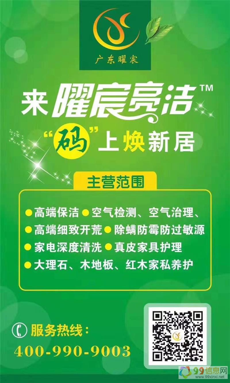 曜宸亮洁目前有12大类、54项小类的家企服务技术,内容几乎涵盖了家、企中的各类服务,实现了一条龙服务,免除了客户奔波寻找的烦恼,在行业中具有极大的竞争力www.99xinxi.net99信息网。在经营上,我们实现了线上线下相结合的销售模式,价格透明、服务标准细致明确,提升了客户体验,让客户对我们所提供的服务能够一键掌握。在售后服务方面,我们拥有400全国服务热线,以及微信在线服务,让客户能够多渠道快速的反映问题。